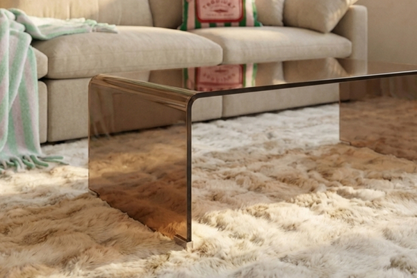 שולחן זכוכית בגוון חם ושקוף שיחמיא לכל שאר פריטי הריהוט, ירים להם ועם זאת - יתפוס את המקום שלו בלב שלך.